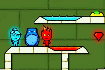 Fireboy can safely walk through lava and collect red diamonds, but water is deadly for him. Watergirl is the opposite—she can pass through water and collect blue diamonds, but lava will defeat her. Green toxic goo is dangerous for everyone, so avoid it at all costs.